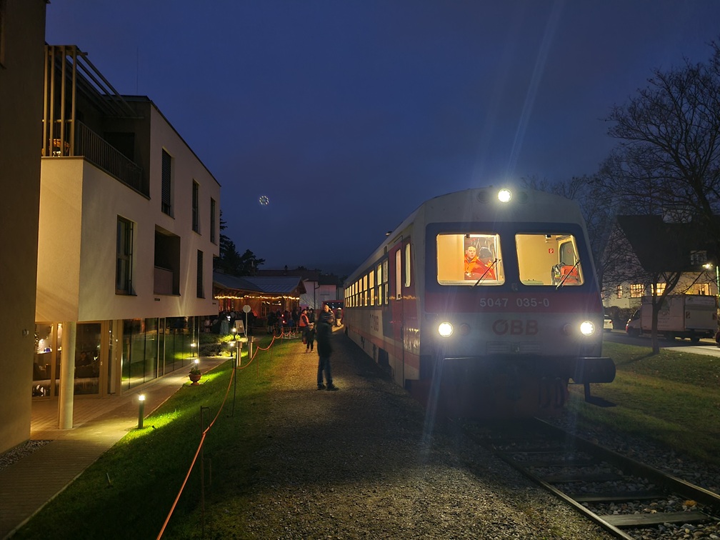 Inkludiert sind die Bahnfahrt hin und retour inklusive Platzreservierung, der Eintritt ins Eisenbahnmuseum und ein Gutschein für den Busshuttle, sowie einen Punsch/Glühwein am Adventmarkt.